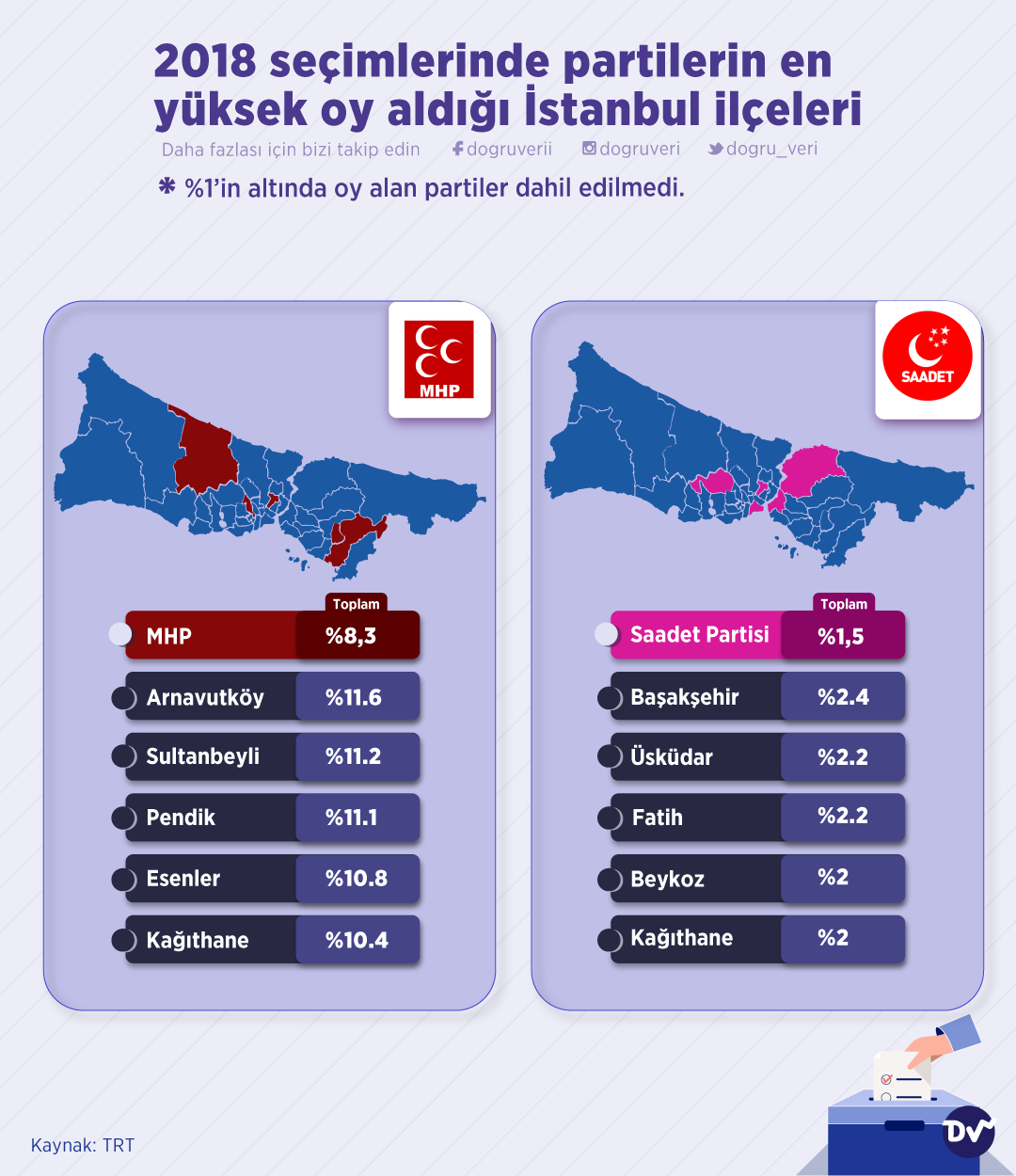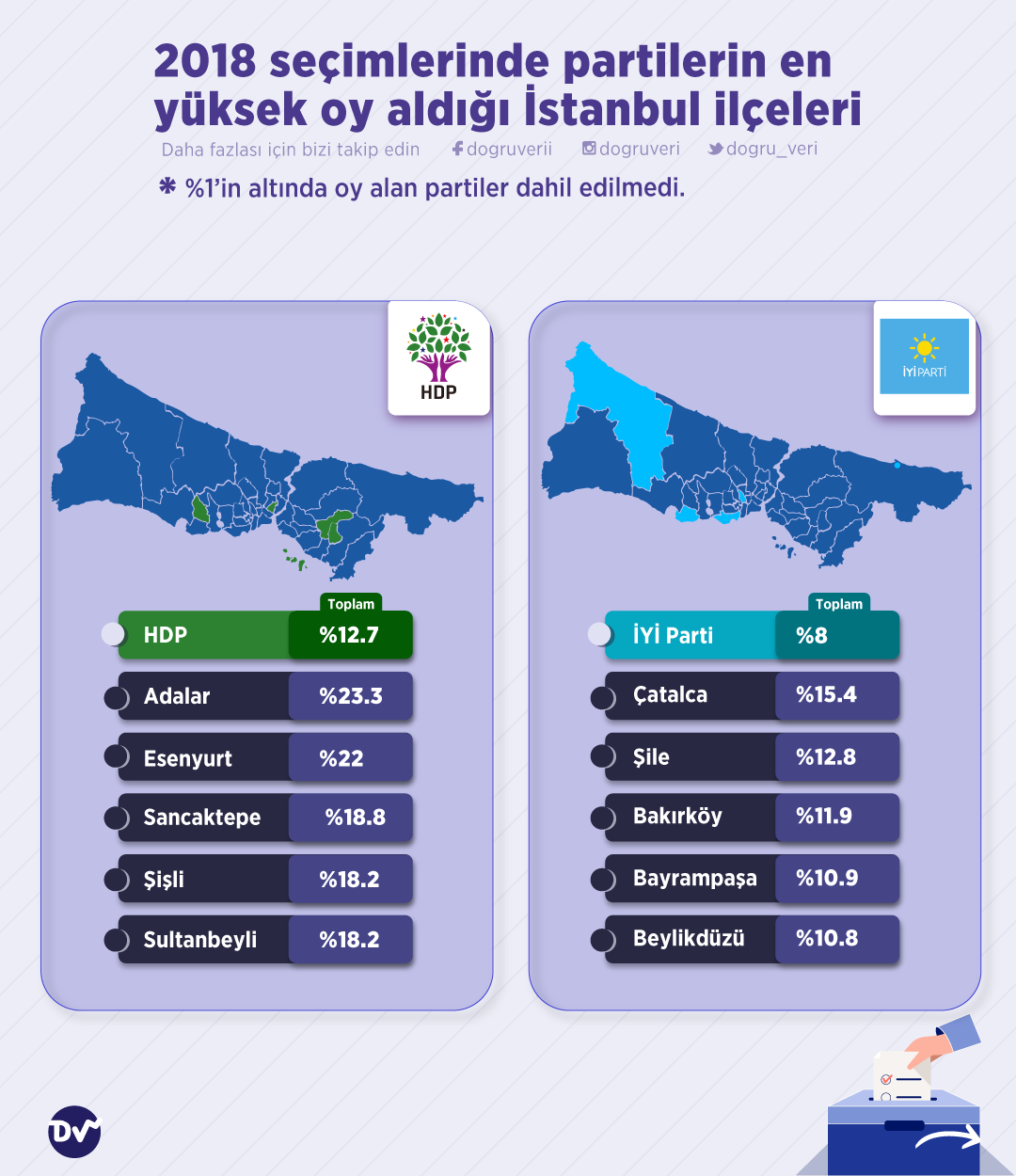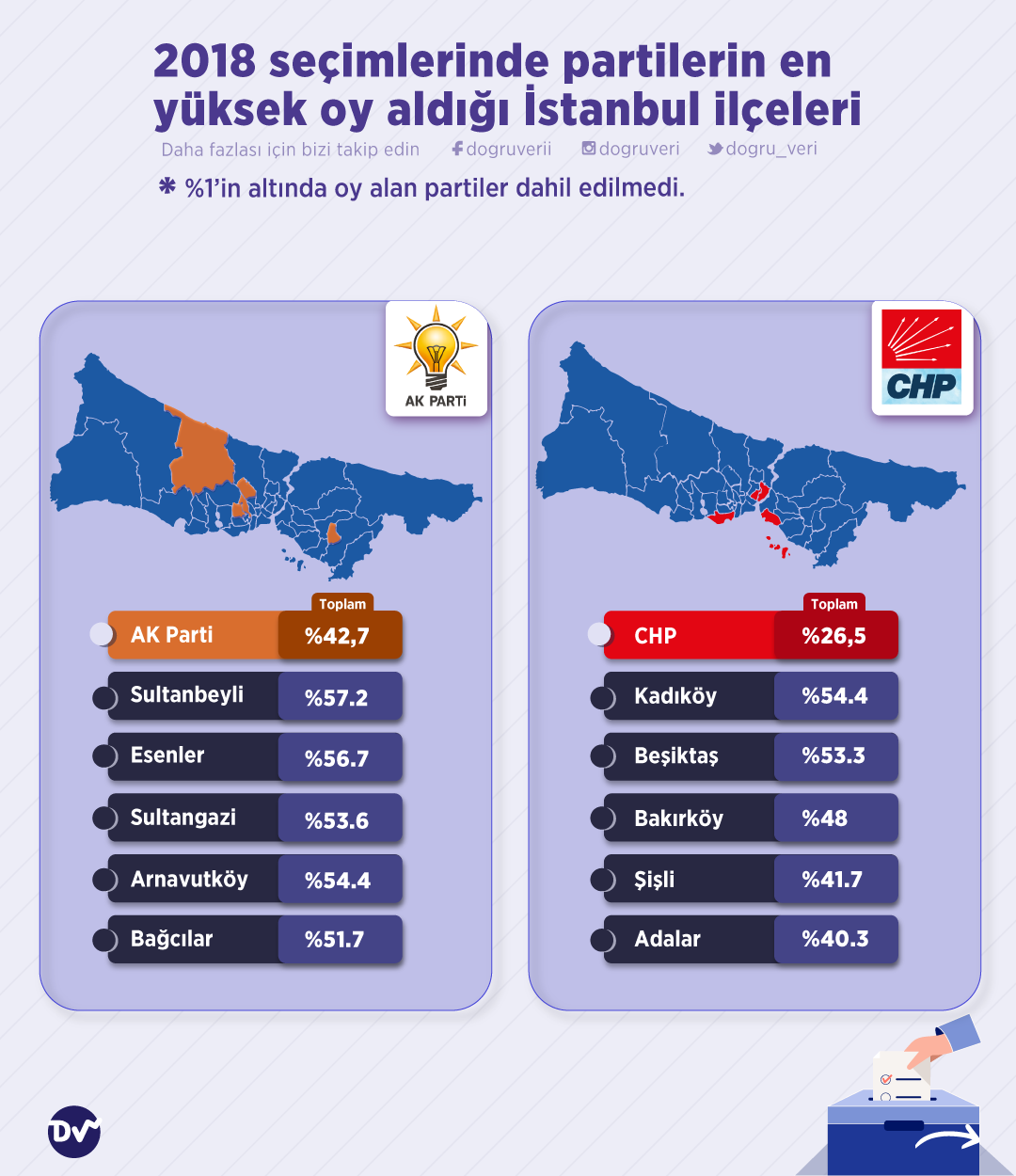 2018 seçimlerinde partilerin en yüksek oy aldığı İstanbul ilçelerini derledik.