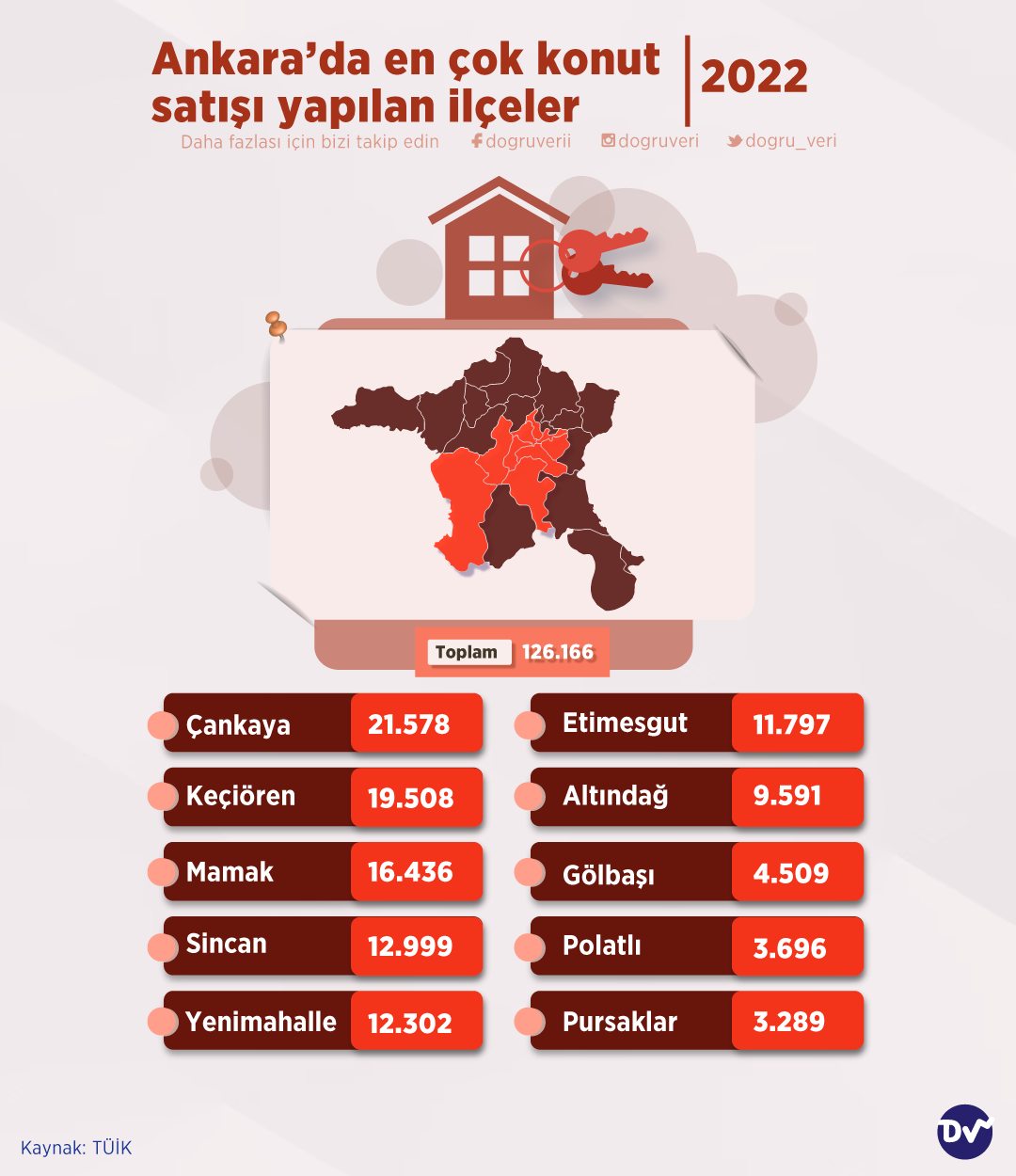Ankara’da en çok konut satışı yapılan ilçeler (2022)