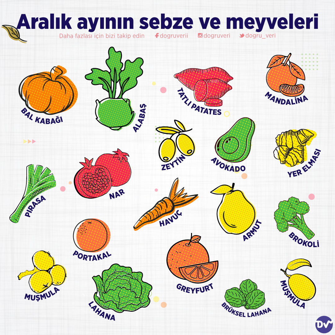 Aralık ayına girdiğimiz şu günlerde kış sebze ve meyveleri de raflarda yerini aldı. Aralık ayının öne çıkan sebze ve meyvelerini listeledik. Bu ayda tüketebileceğiniz sebze ve meyveler arasında, bal kabağı, tatlı patates, mandalina, avokado, nar, havuç, greyfurt, portakal yer alıyor.