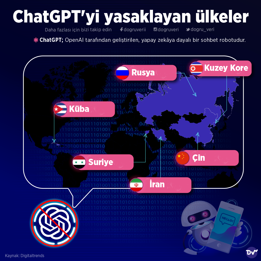 OpenAI tarafından geliştirilen yapay zekaya dayalı sohbet robotu ChatGPT, son dönemlerde oldukça popüler. Herkesin konuştuğu ve merak konusu haline gelen ChatGPT kullanıcıların sorduğu sorulara cevap veriyor. Bugün sizler için ChatGPT’yi yasaklayan ülkeleri derledik.