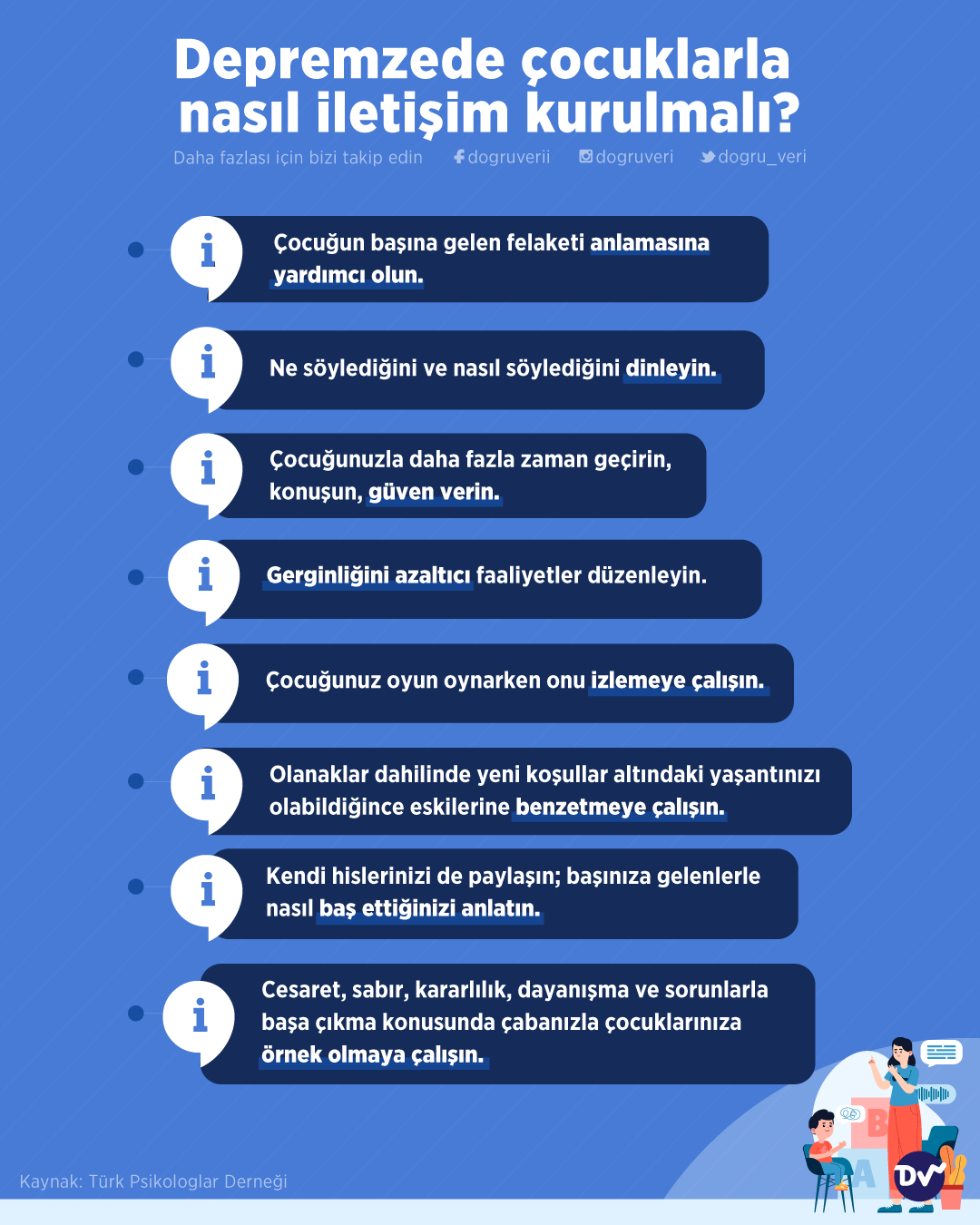 Kahramanmaraş merkezli depremlerle yaşanılan büyük yıkım ve kayıplar bilhassa çocuklar üzerinde ileride travmaya dönüşebilecek etkiler bıraktı. Bu sebeple depremden etkilenmiş çocuklarla iletişim kurulurken dikkatli davranmak gerekiyor. Depremzede çocuklarla iletişim kurarken dikkat edilmesi gerekenleri sizler için derledik.
