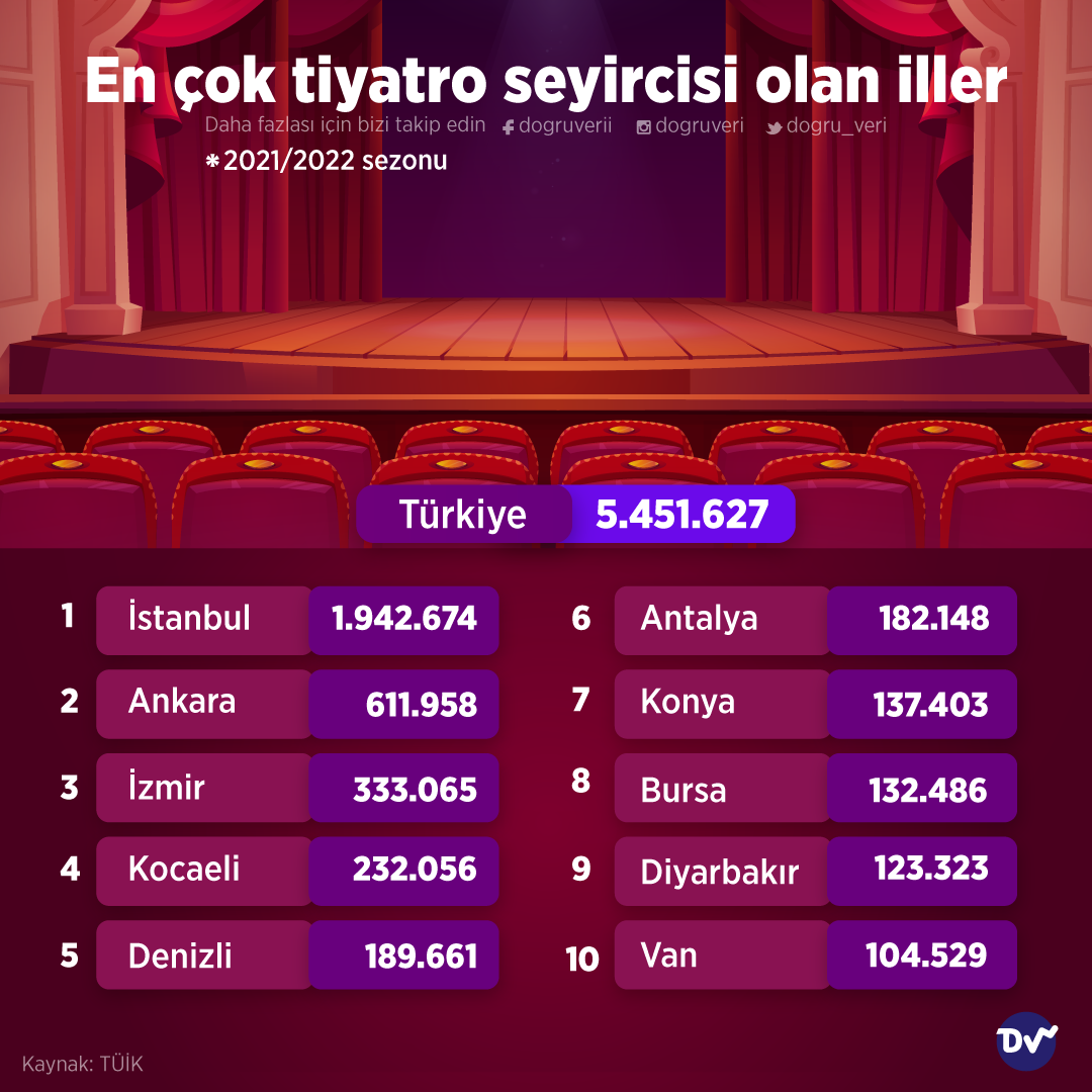 AnasayfaKültür & SanatEn çok tiyatro seyircisi olan illerKültür & Sanat En çok tiyatro seyircisi olan iller Paylaş En çok tiyatro seyircisine sahip illeri derledik. 165 Paylaş