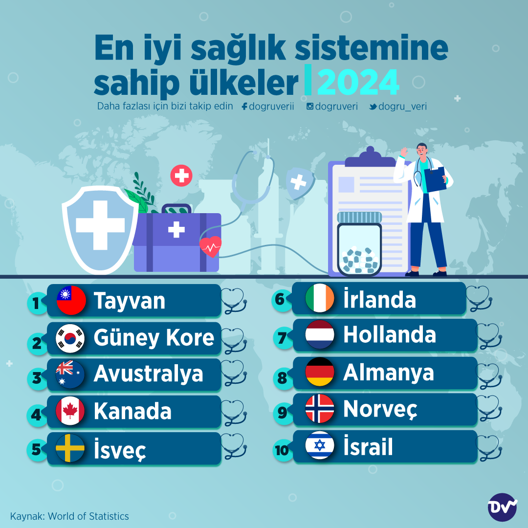 En iyi sağlık sistemine sahip ülkeleri araştırdık. Buna göre listede yer alan ilk 10 ülkeyi derledik. Sağlık hizmetlerinden alınan kaliteyi yansıtan bu sıralamada dünyanın farklı yerlerinden ülkeler bulunuyor. Sağlık sistemleriyle öncü olan ülkelerde ilk sırada Tayvan, ikinci sırada Güney Kore ve üçüncü sırada Avustralya yer alıyor.