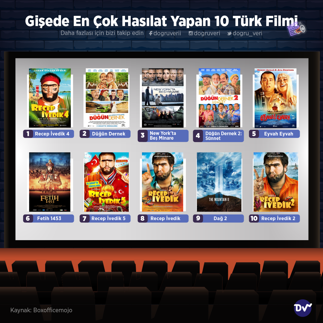 AnasayfaKültür & SanatGişede en çok hasılat yapan 10 Türk filmiKültür & SanatÜretim & Tüketim Gişede en çok hasılat yapan 10 Türk filmi Paylaş Beyaz perdede yayımlanan ve gişede en çok hasılat yapan 10 Türk filmini derledik. 131 Paylaş