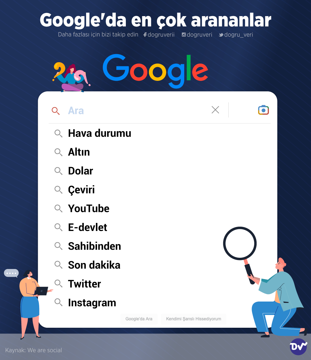 AnasayfaBilim & TeknolojiGoogle’da en çok arananlarBilim & Teknoloji Google’da en çok arananlar Paylaş Arama motoru Google’da en çok aranan kelimelerin başında hava durumu geliyor. Hava durumunu altın, dolar, çeviri gibi sözcükler takip ediyor. 151 Paylaş