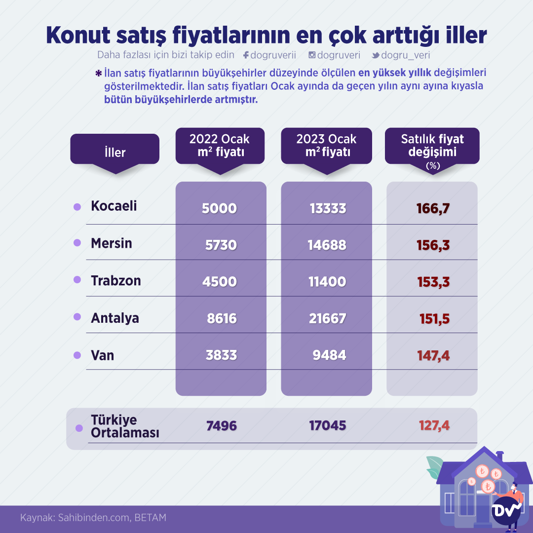11 ilimizin etkilendiği Kahramanmaraş depreminin ardından ne yazık ki binlerce insan evsiz kaldı. Bu süreçte konut talebine ilgi arttı. Sahibinden.com ve BETAM’ın paylaştığı verilere göre konut satış fiyatlarının en çok arttığı illeri derledik. Buna göre Kocaeli, Mersin ve Trabzon konut satış fiyatlarının en çok arttığı iller olmuştur.
