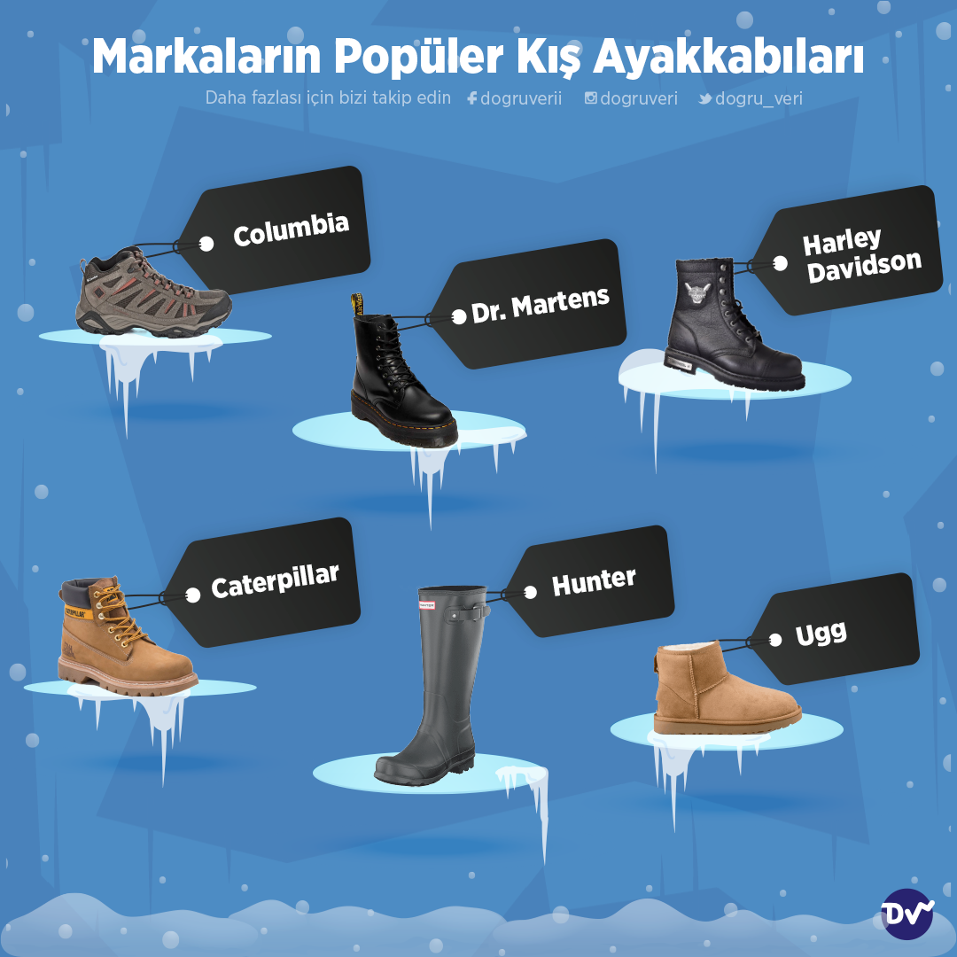 AnasayfaDiğerMarkaların popüler kış ayakkabılarıDiğer Markaların popüler kış ayakkabıları Paylaş Kışın gelmesiyle birlikte kış ayakkabıları raflardaki yerini aldı. Seçili markaların popüler kış ayakkabılarını sizler için derledik. Sıralama ise şöyle: Columbia, Dr Martens, Caterpillar,Hunter,Harley Davidson,Ugg. 22 Paylaş