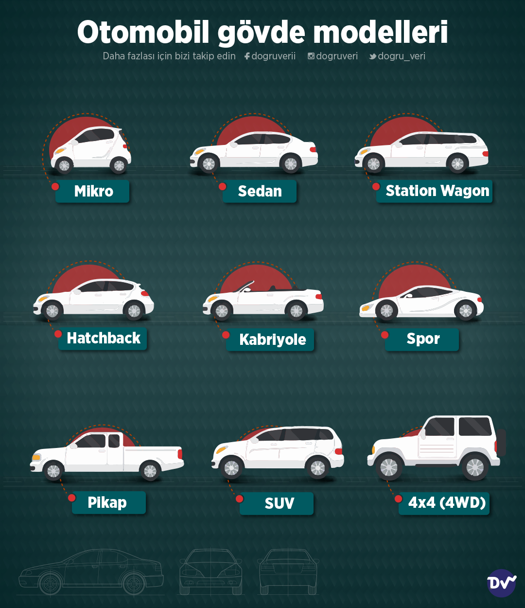 AnasayfaBilim & TeknolojiOtomobil gövde modelleriBilim & TeknolojiÜretim & Tüketim Otomobil gövde modelleri Paylaş Otomobil gövde modellerini sizin için derledik. Derlemedeki otomobil modelleri şu şekilde sıralandı: Mikro, Sedan, SUV, Hatchback, Kabriyole, Spor, Pikap, Station Wagon ve 4×4. 176 Paylaş