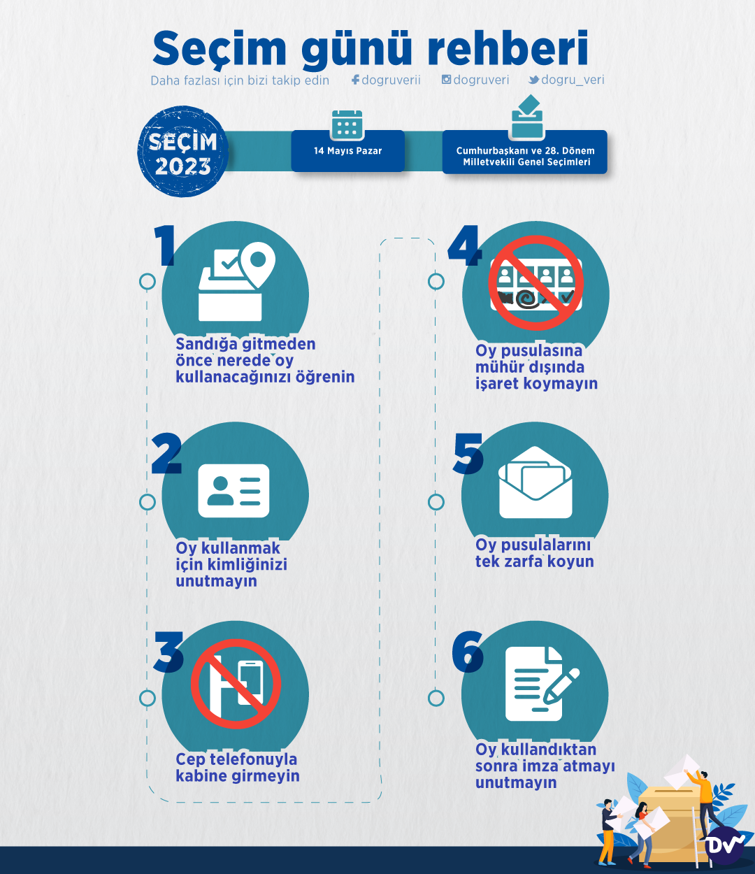 Cumhurbaşkanı ve 28. Dönem Milletvekili Genel Seçimler, 14 Mayıs’ta gerçekleştirilecek. Seçim günü rehber olabilecek adımları, seçmenlerin dikkat etmesi gereken noktaları derledik. Listede; seçmenlerin oy kullanmak için kimliğini unutmaması, oy pusulasına mühür dışında işaret koyulmaması, oy pusulalarını tek zarfa koyması gibi gereklilikler yer alıyor.
