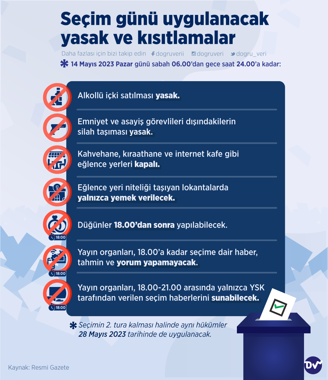 AnasayfaSiyaset & PolitikaSeçim günü uygulanacak yasak ve kısıtlamalarSiyaset & PolitikaSeçim 2023 Seçim günü uygulanacak yasak ve kısıtlamalar Paylaş Yüksek Seçim Kurulu’nun 10 Mart’ta yayınladığı karara göre, seçim günü uygulanacak yasak ve kısıtlamaları derledik. 132 Paylaş