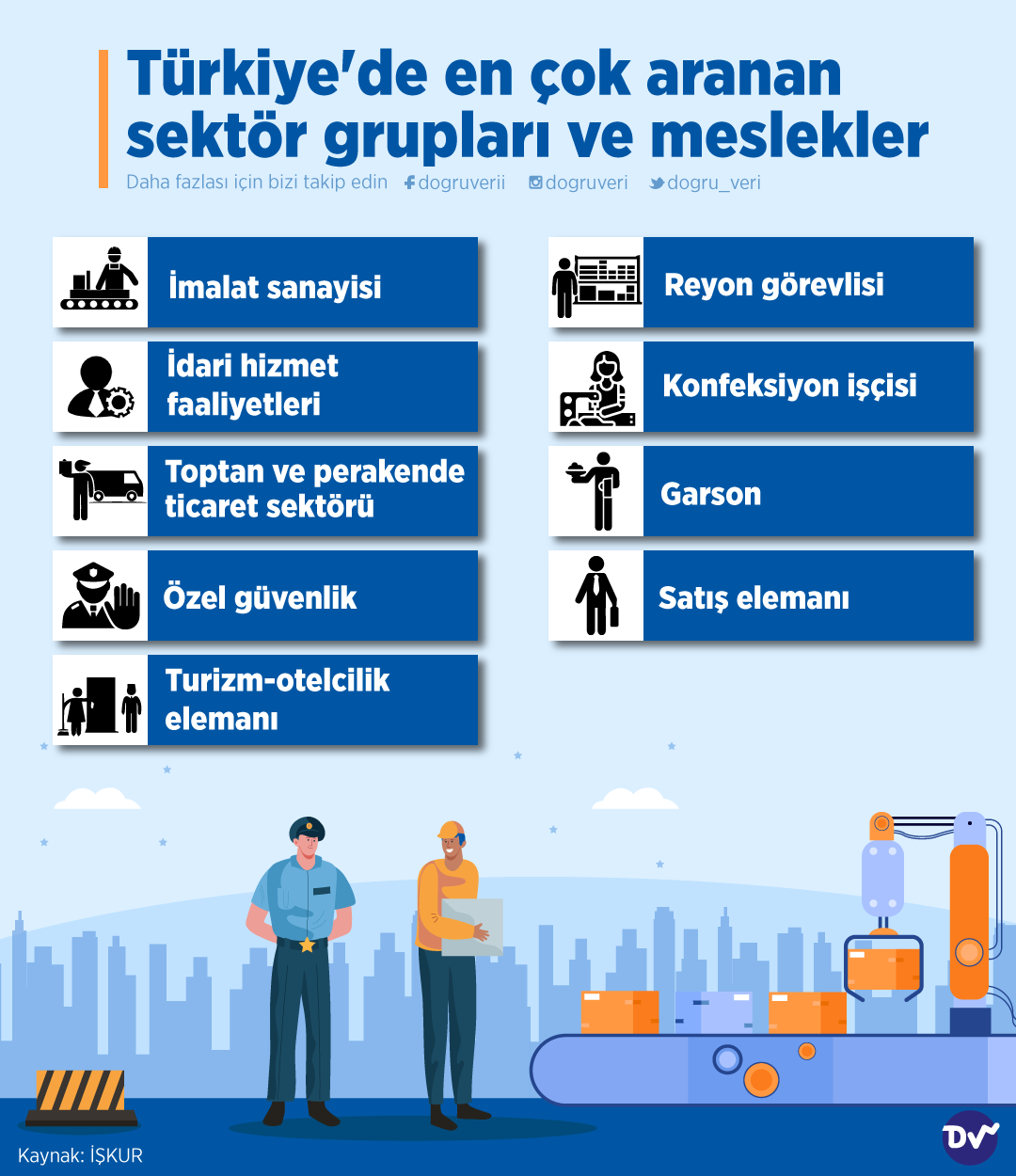 Türkiye’de en çok hangi sektör için eleman arandığını araştırdık. İŞKUR’un verilerine göre kolay iş bulunan meslek grupları arasında en çok imalat, idari hizmet, özel güvenlik, garson, konfeksiyon gibi alanlarda işçi aranıyor.
