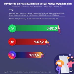 TÜİK tarafından yayımlanan, Hanehalkı Bilişim Teknolojileri (BT) Kullanım Araştırması’na göre bireylerin %82,7’sinin, 2022 yılının ilk 3 ayında interneti düzenli olarak kullandığı açıklandı.