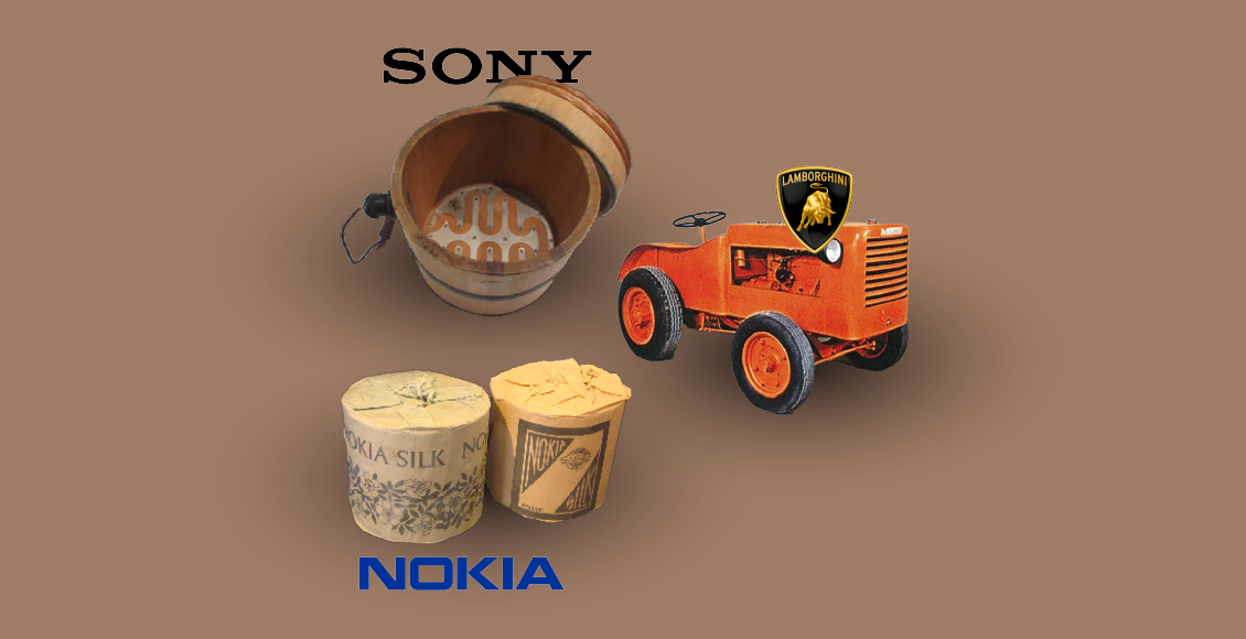 Markaların tarihçelerinden edindiğimiz bilgiler ışığında, markaların başlangıçta sattığı veya ürettiği ürünleri derledik. Örneğin teknoloji markalarından Sony’nin ilk ürünü bir pilav pişirme makinesiyken LG’nin ‘Lucky’ isimli yüz kremiymiş. Nintendo ve Lego markaları ise güncel ürünlerinden çok da farklı olmayan kart oyunları ve tahta oyuncaklarla ön plana çıkıyor.